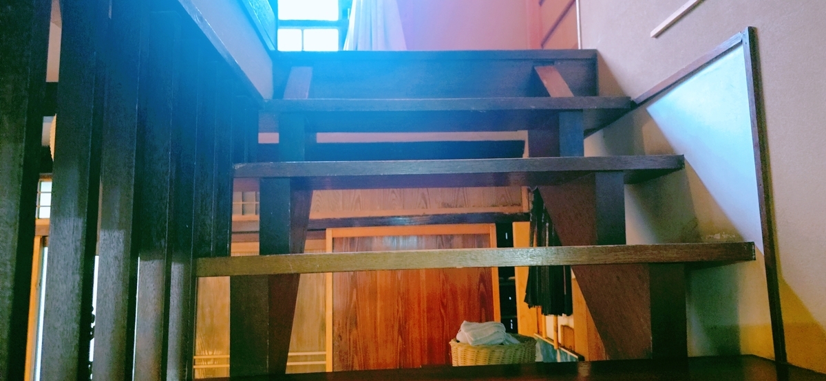 宿に戻り、お部屋へと続く玄関横の急な階段を上ります。